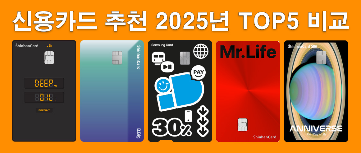 2025년에 꼭 살펴봐야 할 신용카드 추천 TOP5를 정리했습니다.