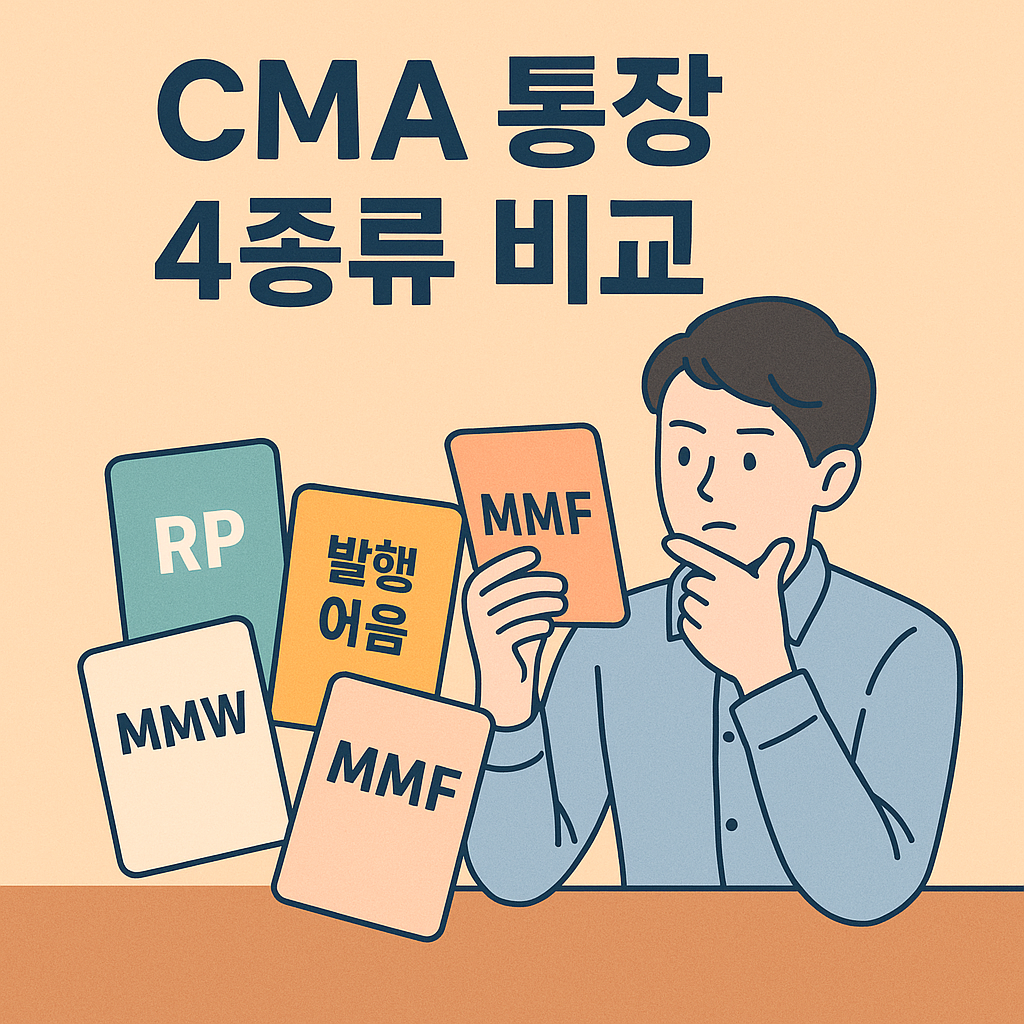 **CMA(Cash Management Account)**는 증권사에서 제공하는 통장인데, 하루만 돈을 넣어둬도 이자가 생기고 은행보다 금리도 높아요. 그런데 CMA도 종류가 4가지나 있다는 거 아셨나요?